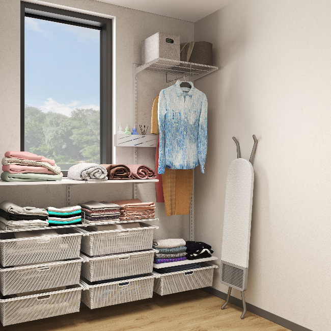 Гардеробная система ПРАКТИК HOME — это идеальное решение для организации хранения в ванной комнате или постирочной. С её помощью вы легко превратите хаос в упорядоченное пространство, где у каждой вещи будет своё законное место. На прочных верхних полках удобно хранить запас моющих средств, стиральные порошки и банные принадлежности. Специальные мелкосетчатые корзины позволяют аккуратно рассортировать белье и одежду по категориям. Встроенная штанга незаменима для сушки вещей на плечиках, что помогает избежать лишних складок перед глажкой. Данная модульная система хранения легко адаптируется под размеры вашего помещения и выдерживает значительные нагрузки. Надежная конструкция ПРАКТИК HOME гарантирует долговечность и эстетичный вид интерьера. Создайте функциональную зону комфорта, где всё необходимое всегда будет под рукой